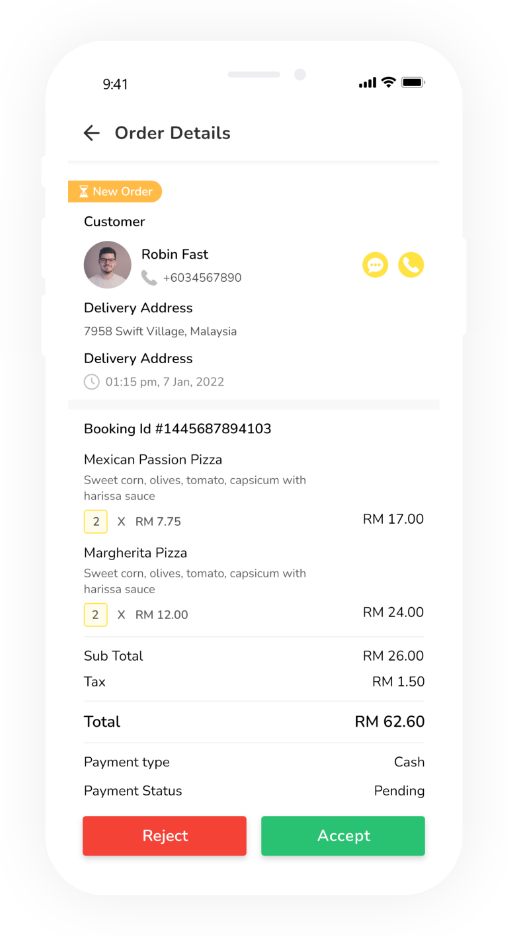 After an admin approves your store request, you will get a real-time order request. You have an option to accept or decline the order request. Also, you can manage restaurant details with some few click.